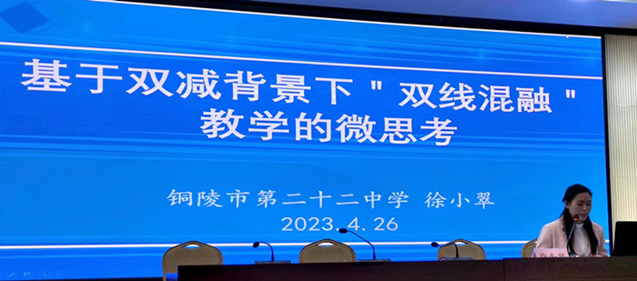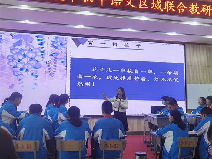 此次活动共有三项内容:第一项由市二中万靓靓和顺安中学黎韵老师展示课例《紫藤萝瀑布》,第二项由市二十二中徐小翠老师做《基于双减背景下“双线混融”教学的微思考》主题报告,第三项为专家点评。