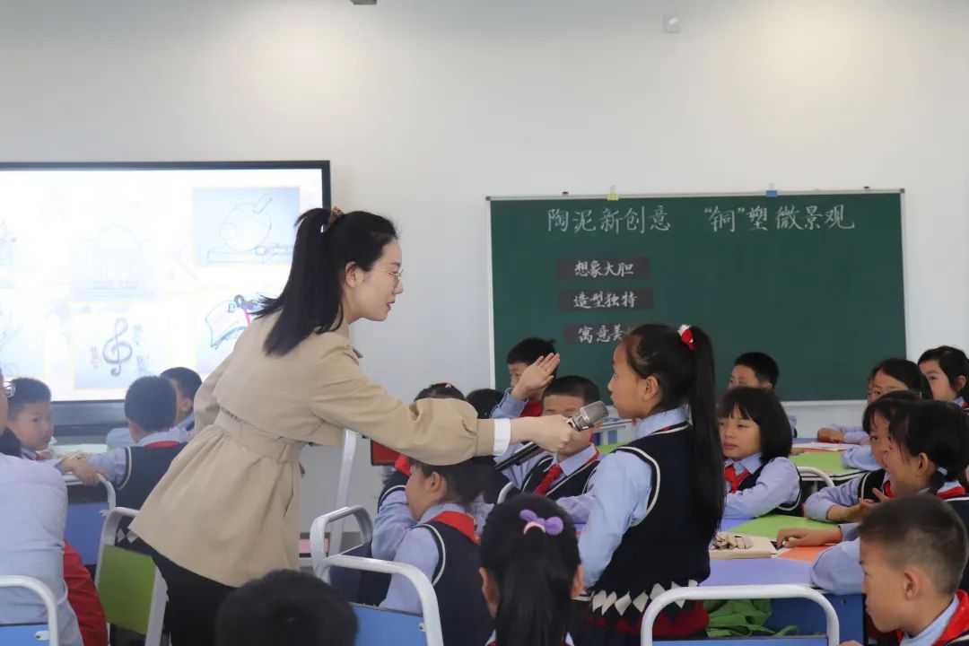 师范附属二小的李强和吴丽华两位教师进行了一节双师课堂的教学,他们分别从旅游我推荐;了解铜工艺和陶艺;铜雕塑设计师三个环节入手,由浅入深的开展教学,课堂中孩子们沉醉其中,一件件精致的手工作品充满创意。