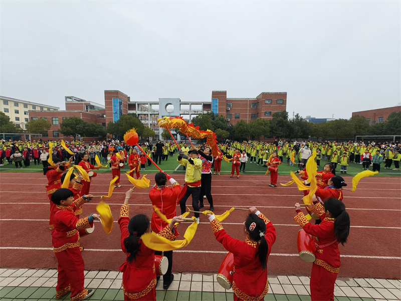 金狮小学举行以“民俗文化进校园,龙舞起航开新篇”为主题的开学典礼(供稿:施旗)