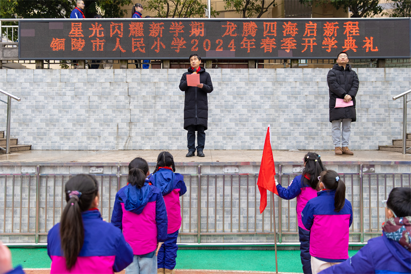 “开学思政第一课”铜陵市人民小学开展“星光闪耀新学期,龙腾四海启新程”2024年春季学期开学典礼(供稿:沈平)
