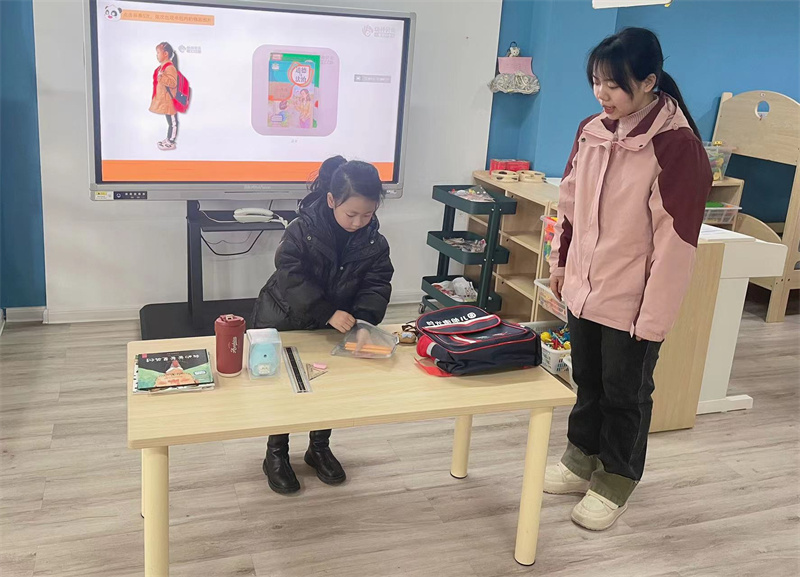 时光街幼儿园以“平安、健康、成长”为主题开展《开学第一课》活动,图为大班幼儿在老师的引导下整理学习用品。(供稿:杨郴)