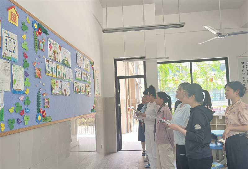 评委们走进一间间教室,仔细观察了室内环创、走廊文化、学生文明礼仪卫生等方面的文化布置情况,进行了认真地评审并提出了具体的意见和建议,鼓励各班级不断创新思路,发动学生作用,突出班级文化特色,继续发挥环境育人的功能。