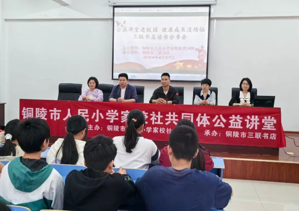 4月27日上午,市人民小学家校社共同体携手公益联盟单位市三联书店,走进义安区老洲中心学校开展公益讲堂活动。
