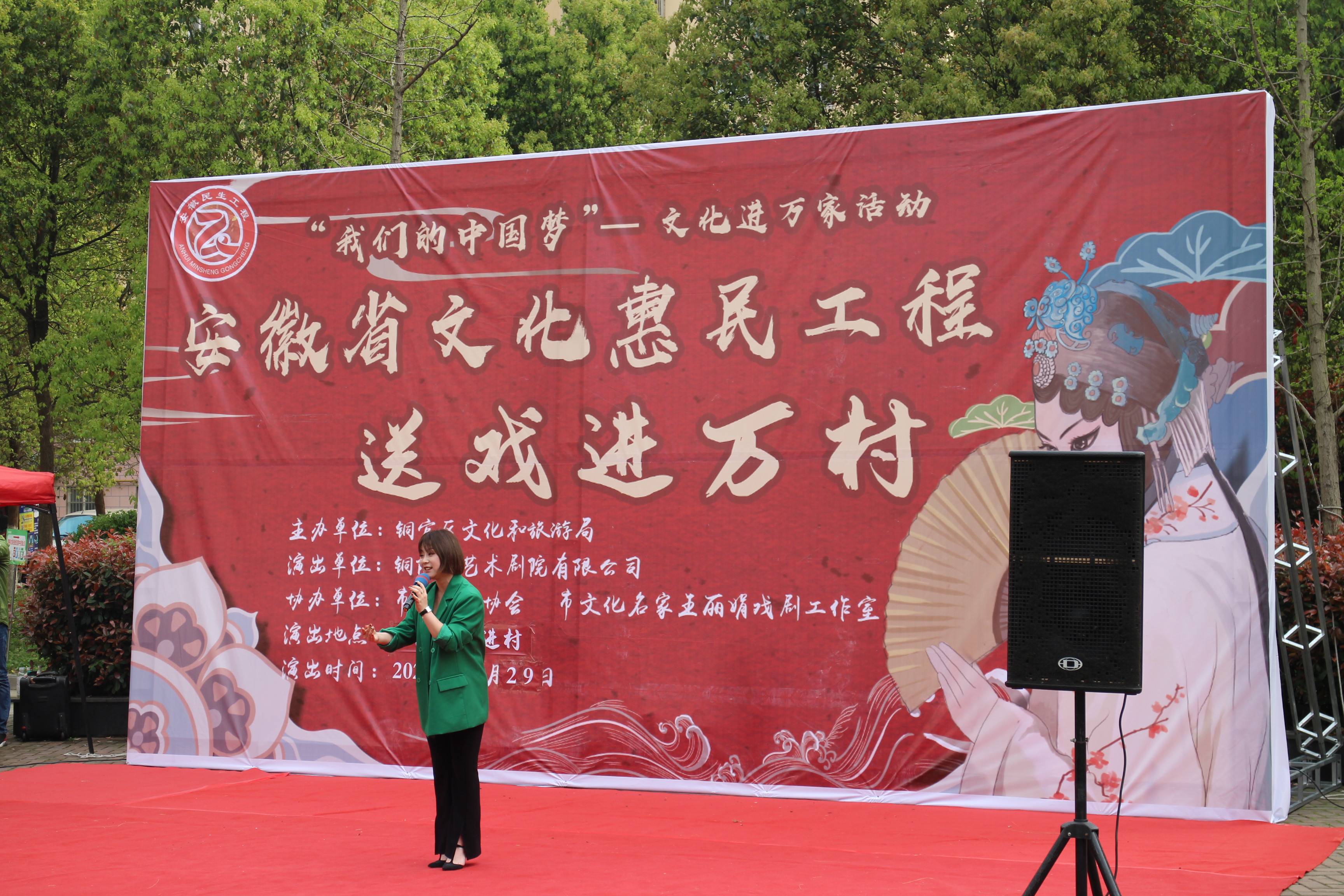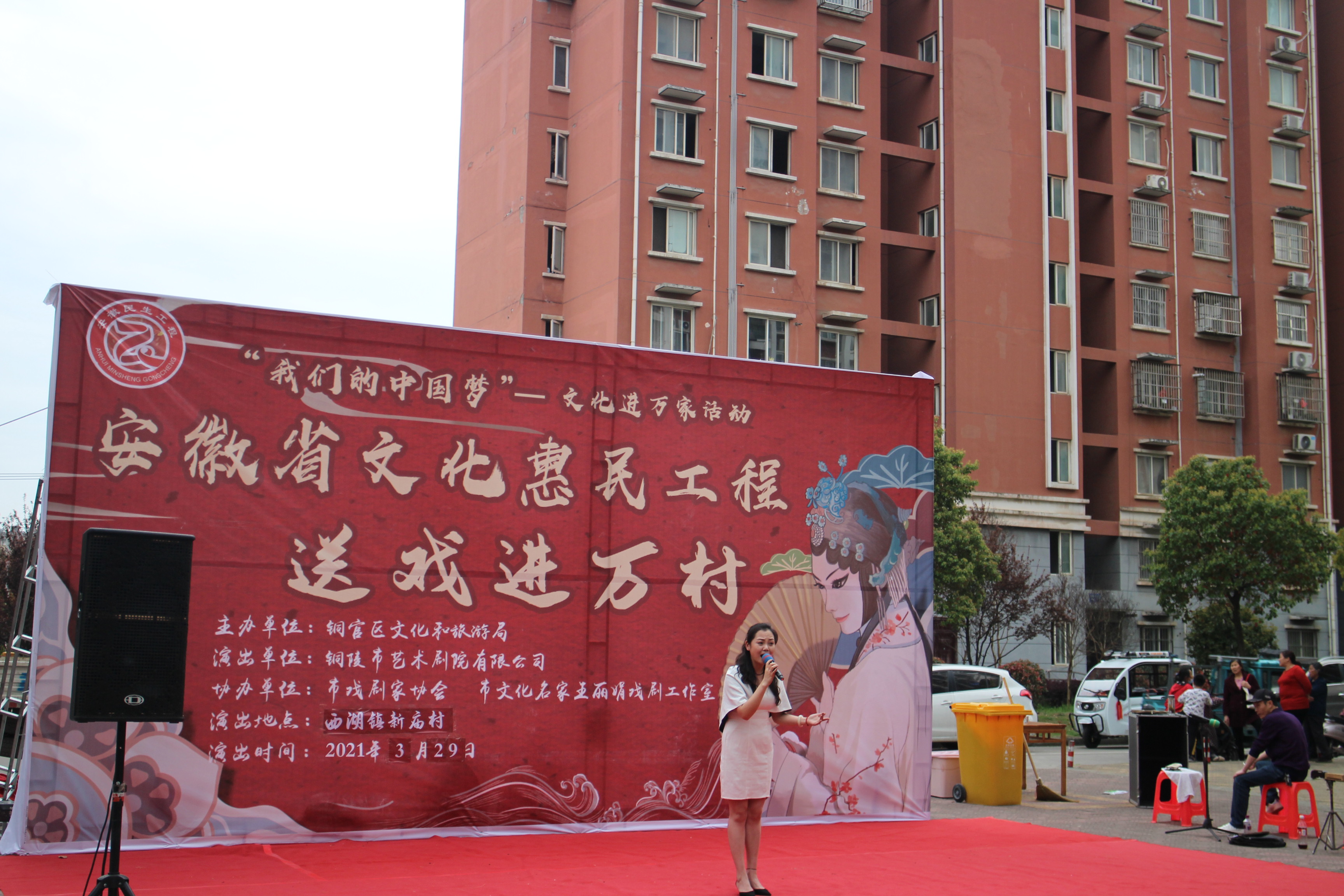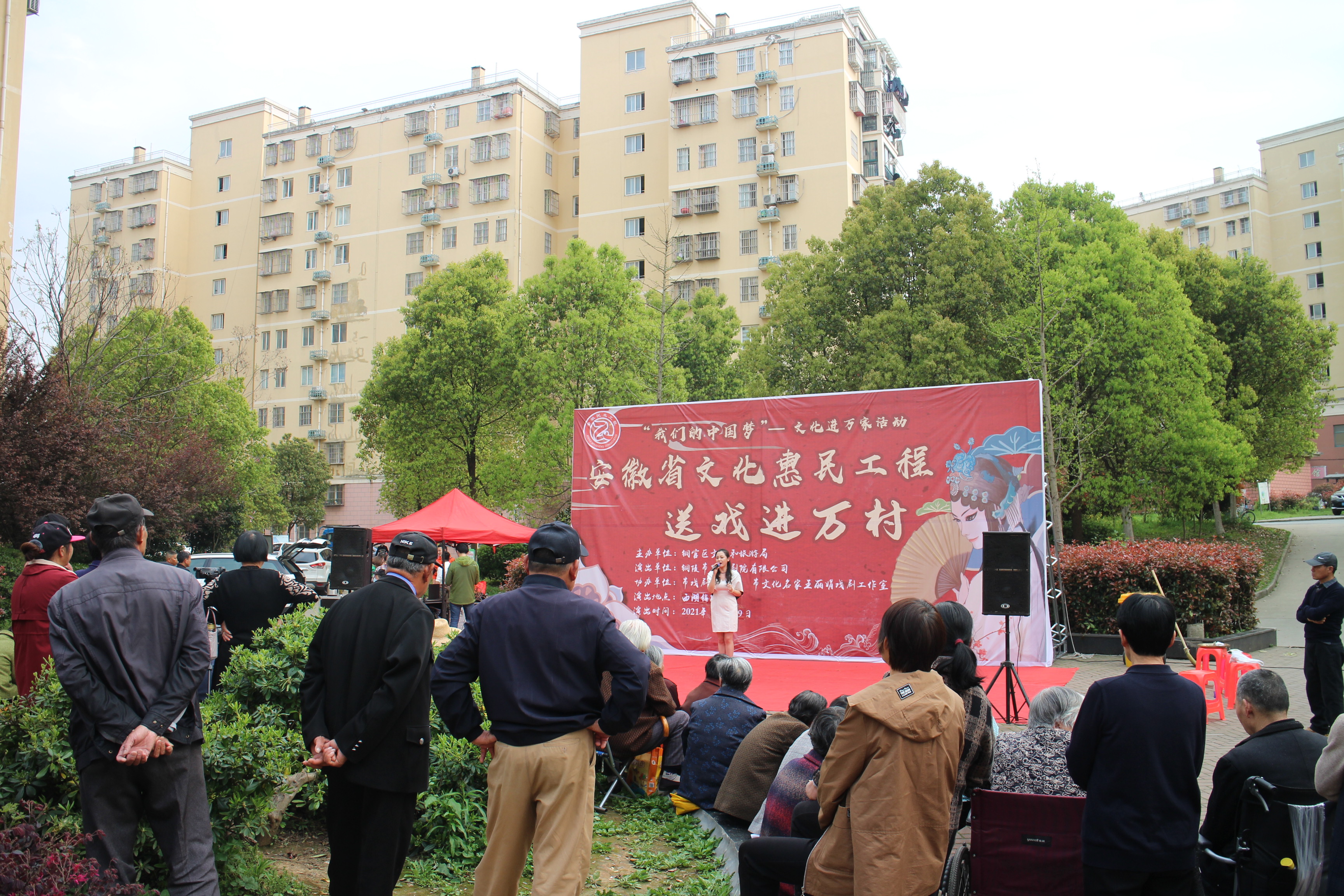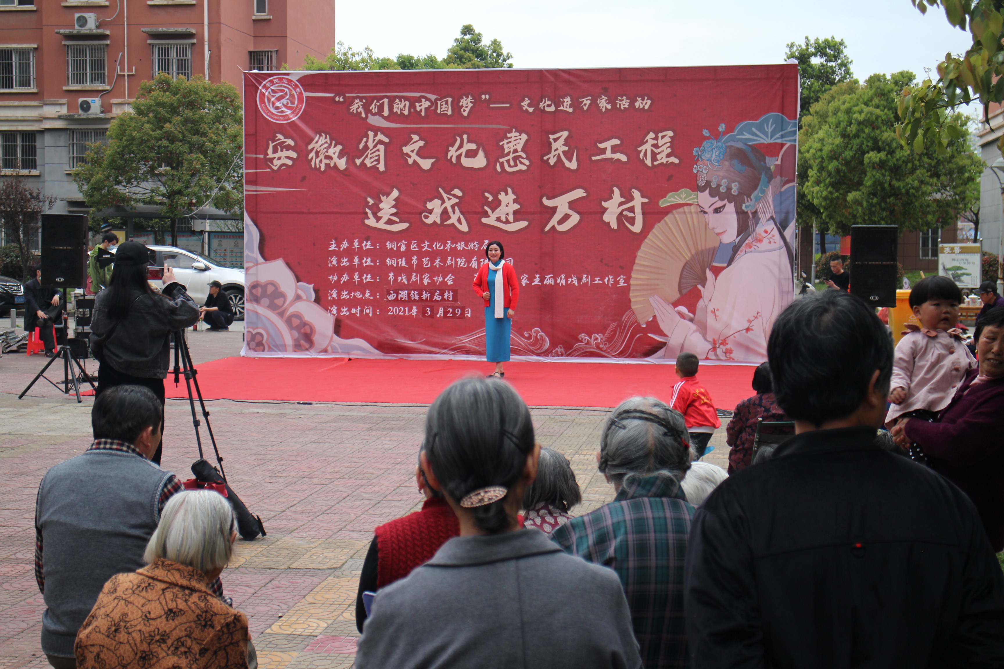 【铜官区文化惠民工程实施图集】图为“送戏进万村”西湖镇长龙村活动现场演出团体表演戏曲名段清唱《送茶香》