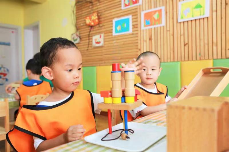 【幼儿托育】图为大风车托育中心小朋友利用教具进行创意拼搭,培养创造性