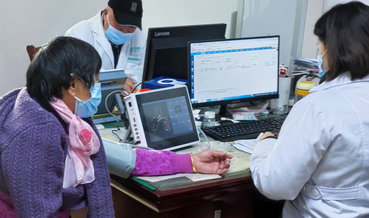 【城市社区卫生机构和村卫生室标准化建设项目】图为先锋卫生服务站配备健康一体机为老年人提供服务
