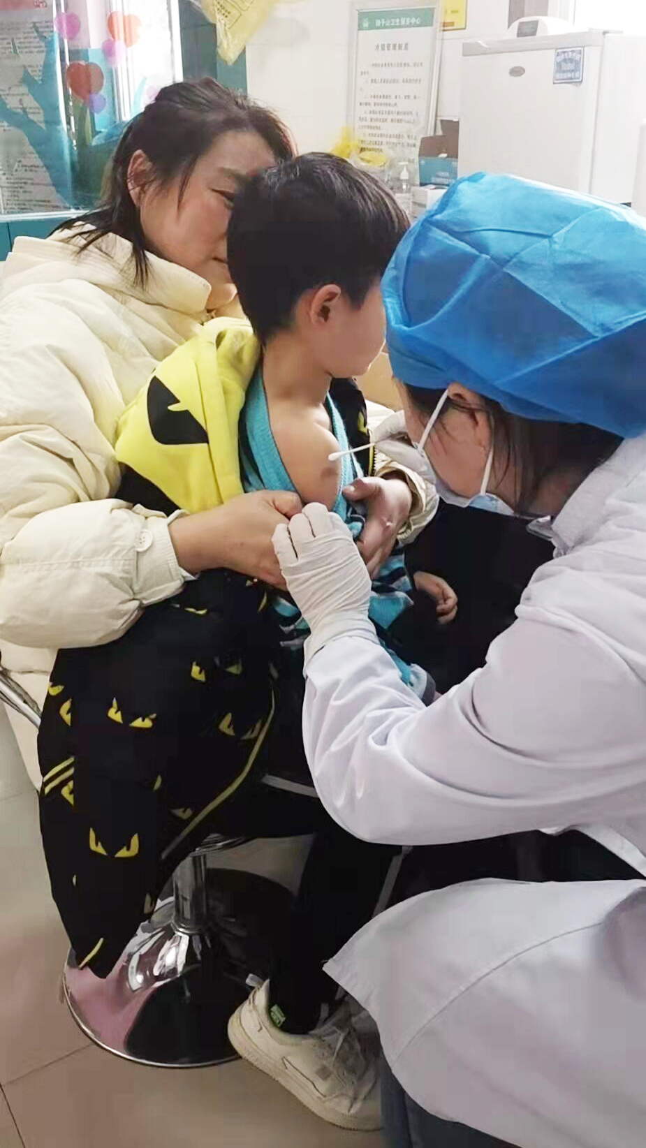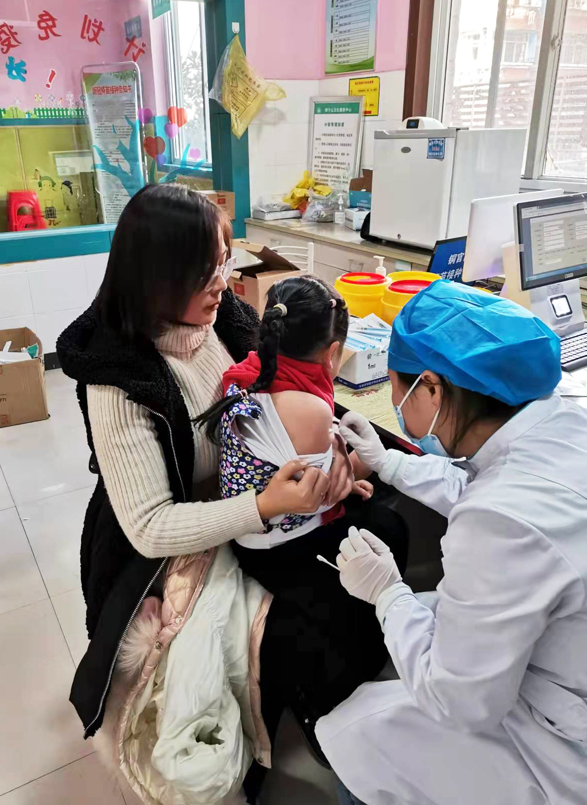 【免疫规划项目】图为医务人员正在社区卫生服务站预防接种门诊室里给儿童实施免疫规划项目,进行疫苗免费接种(1)
