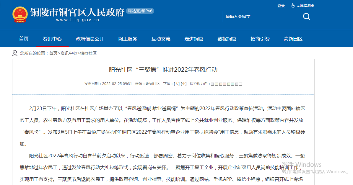 【就业促进民生实事】图为铜官区借助中国公共招聘网发布招聘会的相关信息