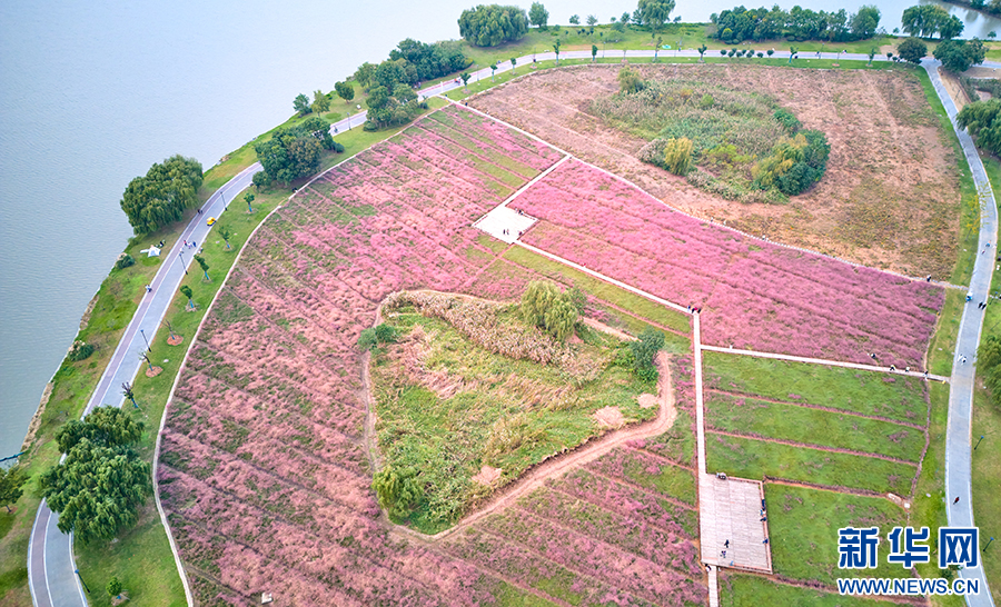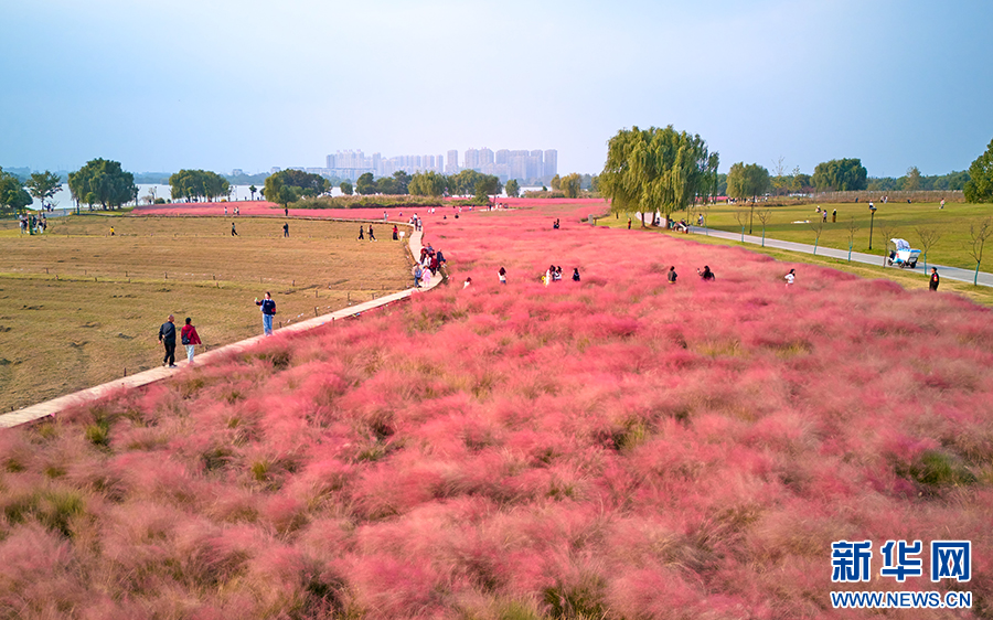 深秋时节,安徽省铜陵市西湖城市湿地公园内,连片的粉黛乱子草如梦如幻,吸引了众多游客前往观光打卡,陶醉其间,乐享美好时光。