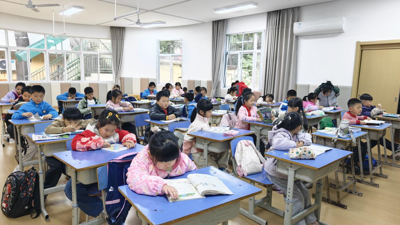 图为铜官区师范附幼石城路园区的托管教室,小学生们午休前在此阅读、写作业,闲置园所变身为贴心的课后托管阵地。