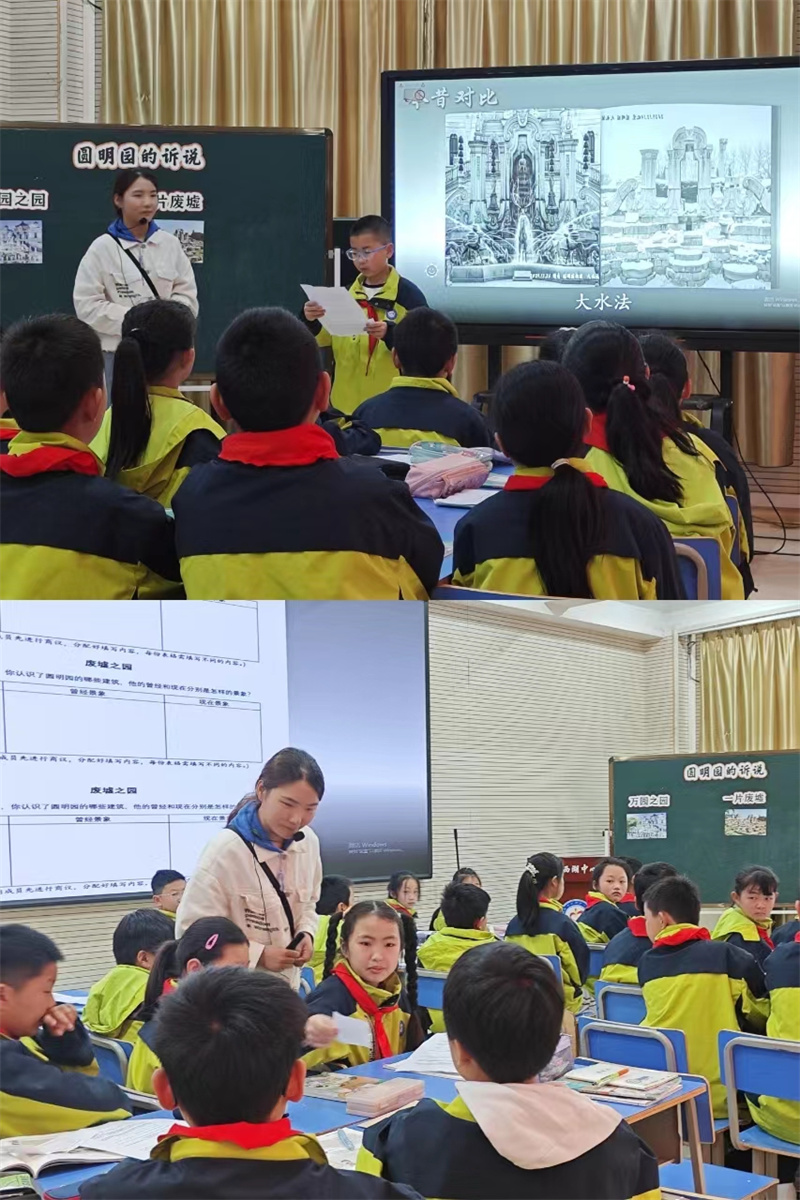 阚老师执教五年级下册第7课《不甘屈辱 奋勇抗争——圆明园的诉说》。阚老师用“圆明园的语音自述”为线,通过出示圆明园被毁前后的图文资料及雨果的话,“圆明园的重建”开放性话题的讨论,引导学生深入思考这段历史留给今天的启示,启发学生去思考、去探究,激发学生对侵略者的愤慨之情、对腐败清政府的痛惜之情、对文化遗产毁灭及流失的惋惜之情,唤起学生的民族精神和爱国热情。