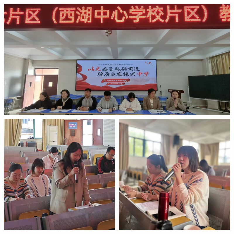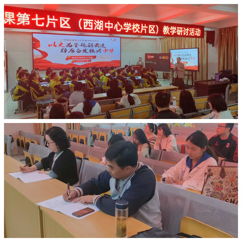为落实立德树人根本任务,加强新时代中小学思想政治理论课教师队伍建设,持续提高思政课育人功能和学校德育成果,突出课堂教学质量和育人实效,4月19日上午,铜官区小学思政第七片区教学研讨活动在西湖中心学校举行。