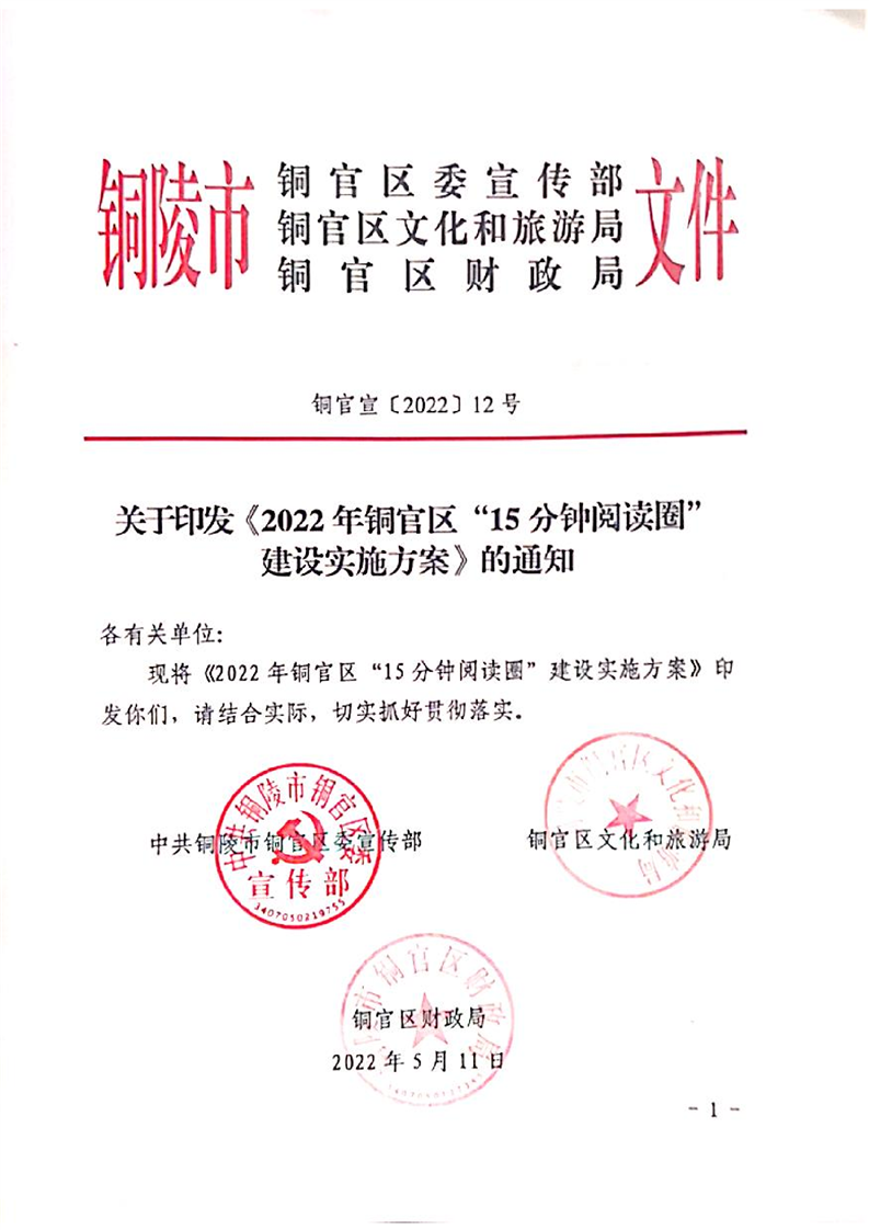 关于印发《2022年铜官区“15分钟阅读圈”建设实施方案》的通知 - 铜官区人民政府