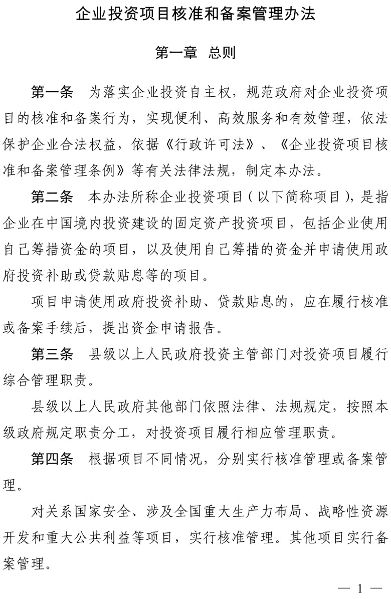 企业投资项目核准和备案管理办法 - 铜官区人民政府