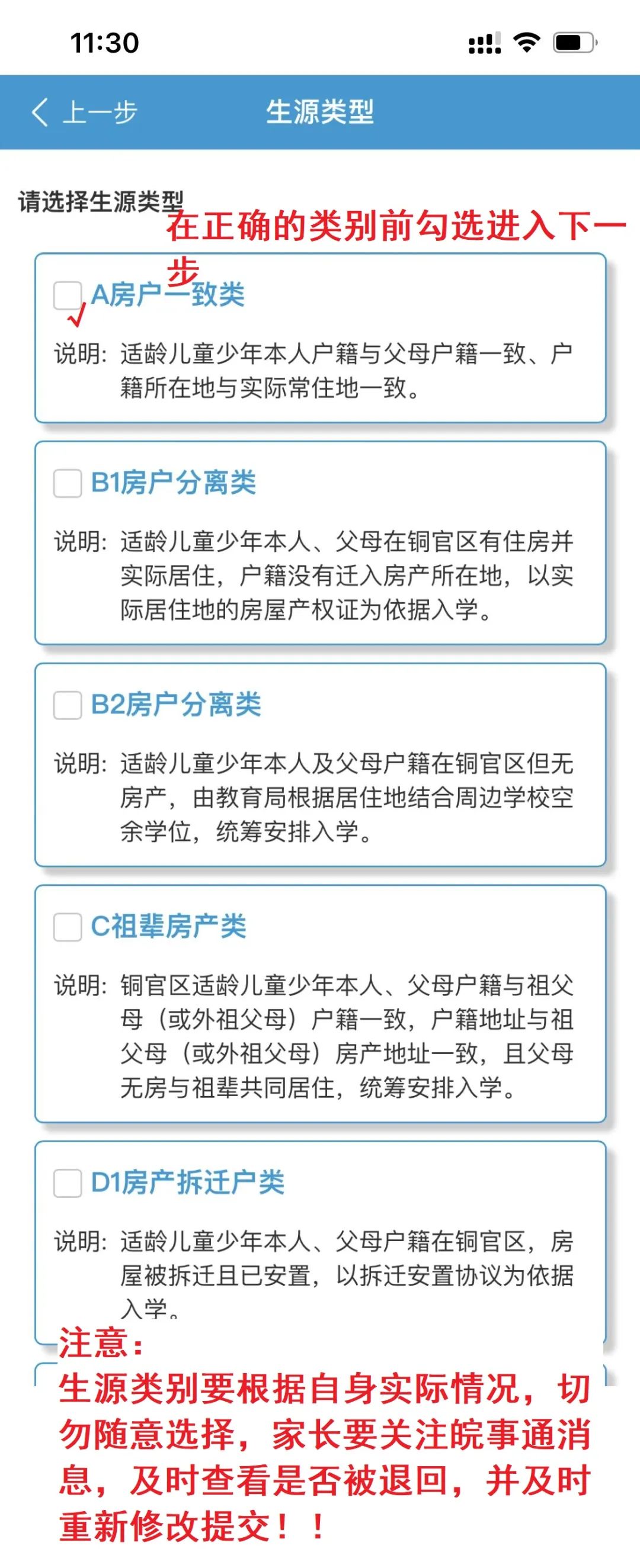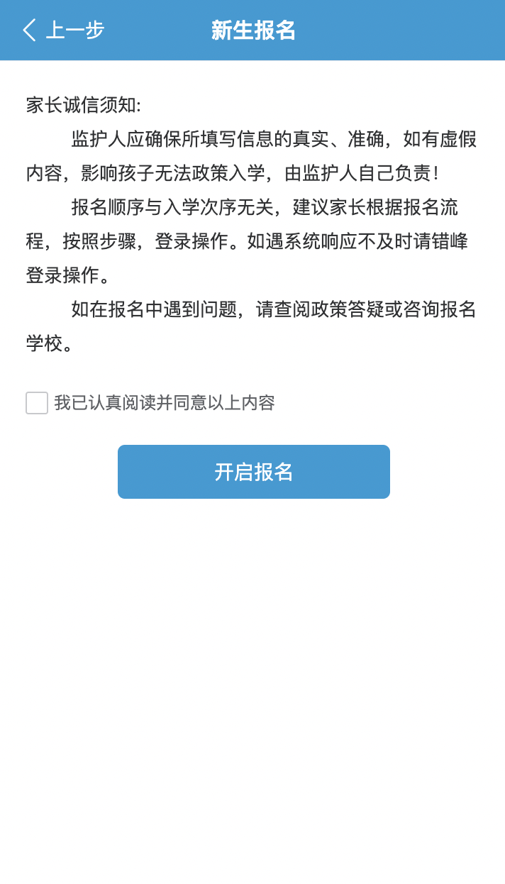 1.阅读家长诚信须知,选择学段