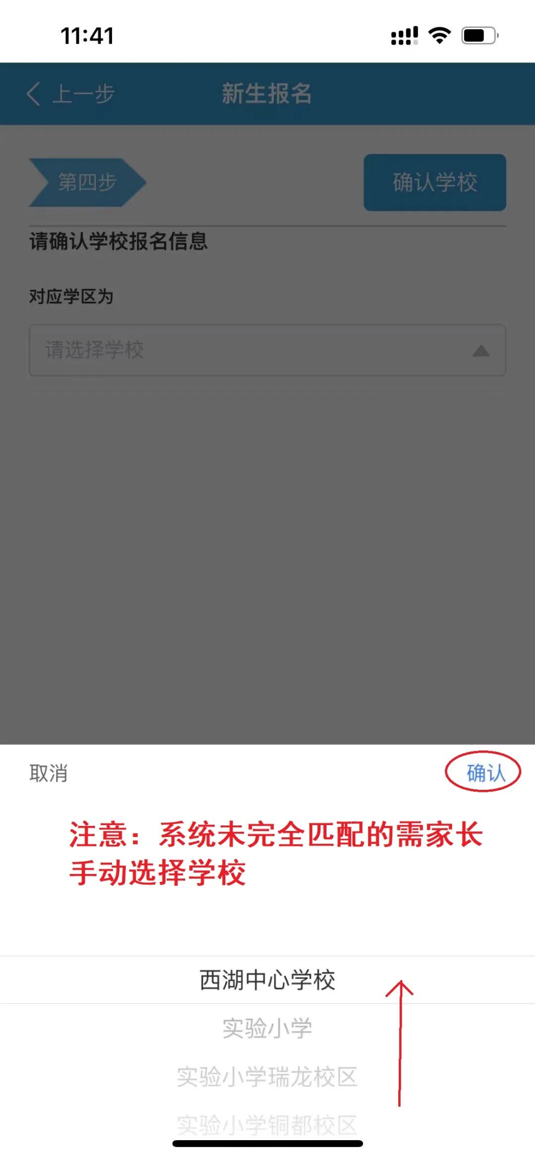 新生报名信息填报完毕,请在规定时间内查询审核结果和录取学校。家长请关注皖事通消息,及时查看是否被退回,并及时重新修改提交!