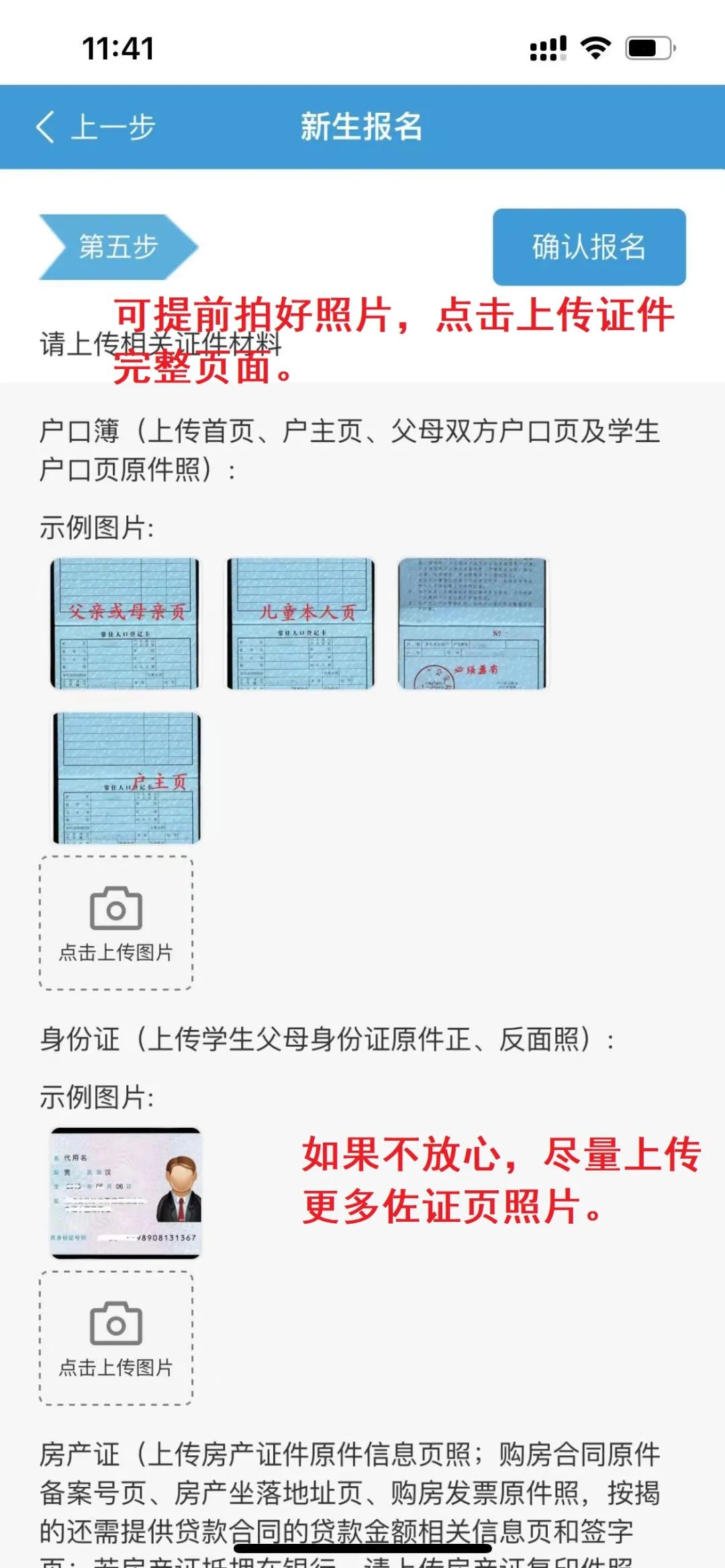 ⑤出生医学证明拍照上传儿童少年信息页面。